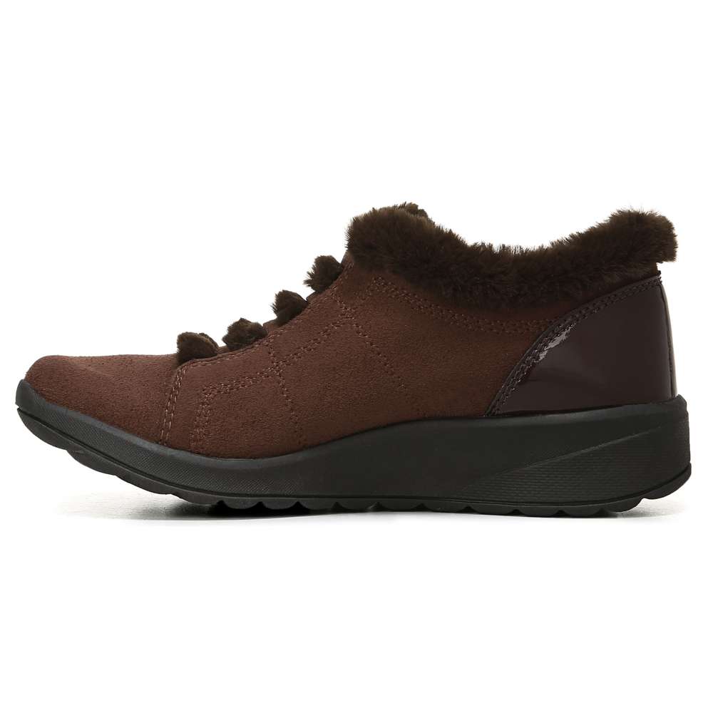 • Stretch fabric upper with faux fur lining in a casual bootie style with a round toe.