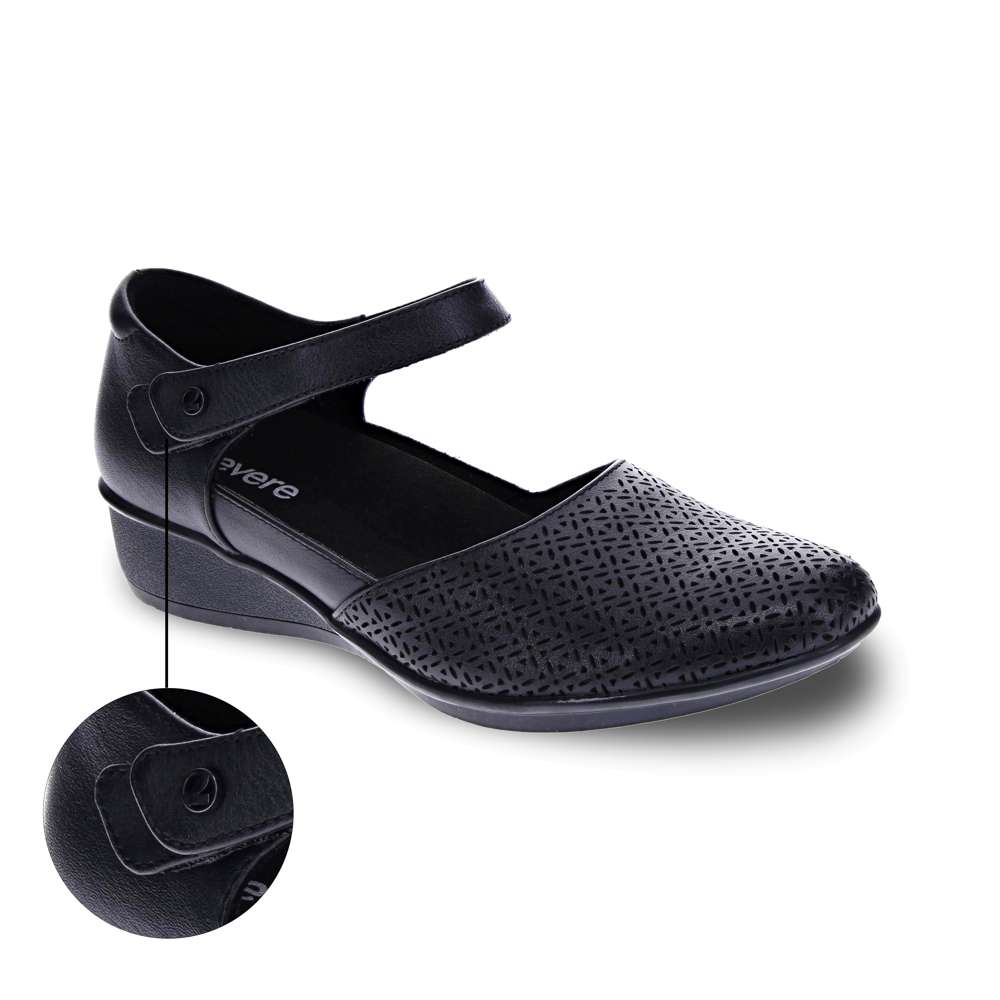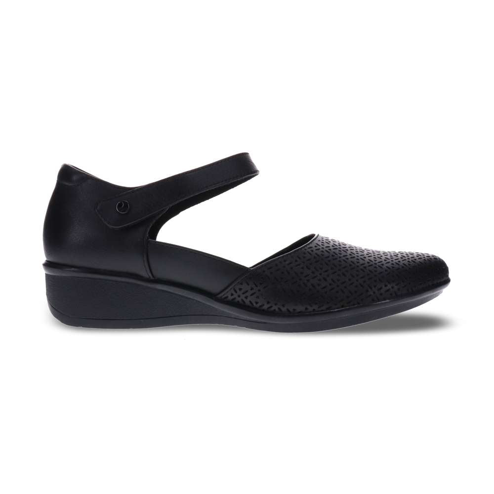 Delicate perforations adorn these stylish mary jane shoes, ensuring a soft, flexible fit. A tapered wedge adds just enough height, bridging the gap between work and weekend-wear. Like its namesake city, Osaka brings together modern styling while paying homage to a traditional silhouette. These orthopedic shoes for women feature a removable insoles which allows for the insertion of custom orthotics.