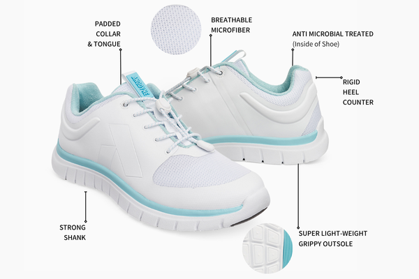 - Multiple widths and removable insoles to accommodate orthotics and swelling
