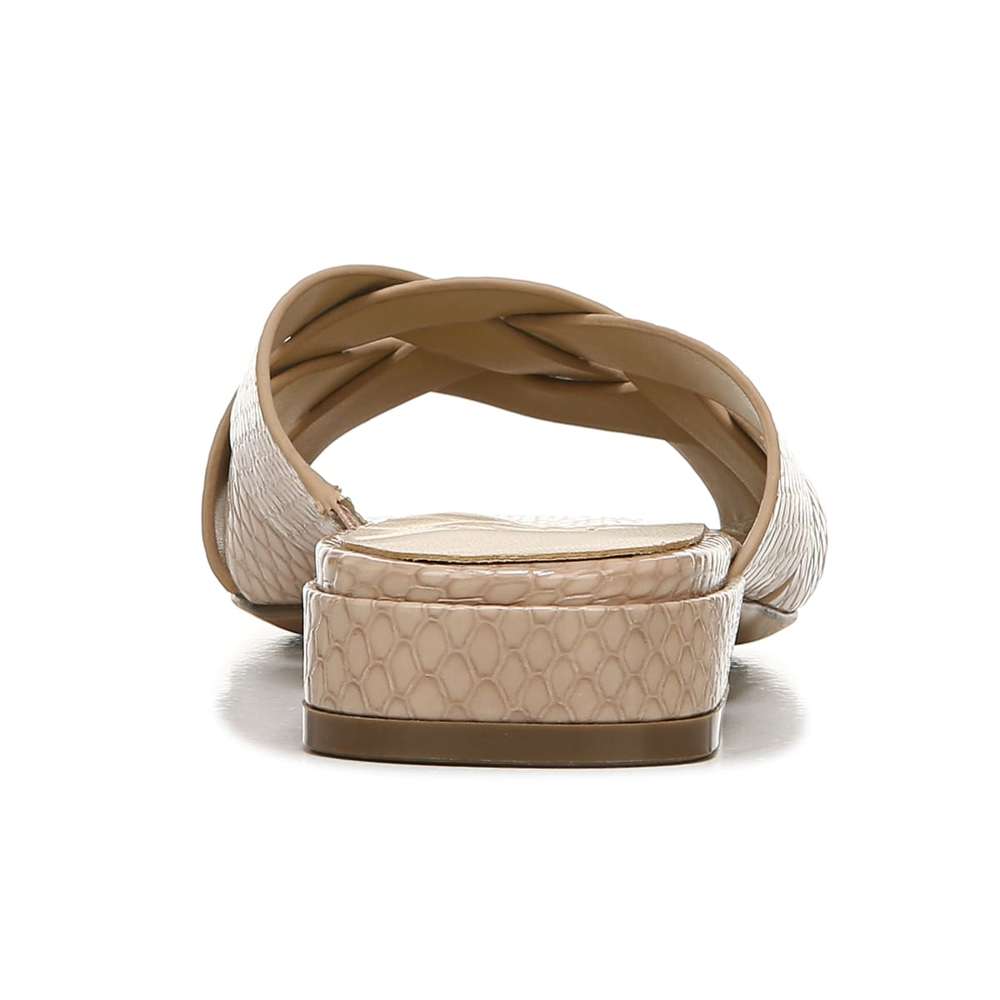 Ease into the weekend comfortably. Interwoven straps add minimal style to this slide sandal with maximum comfort, a squared-off toe and a low block heel. Wear what moves you.