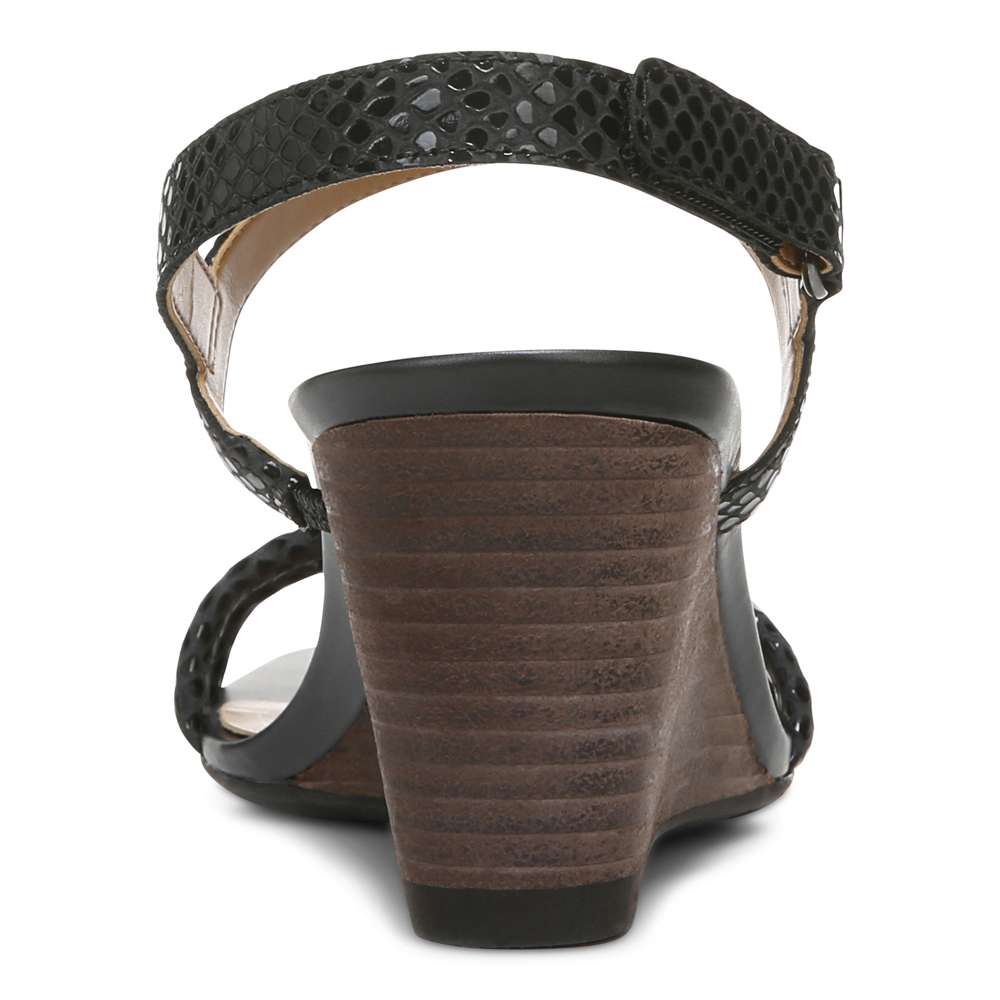 Embossed lizard-print leather straps and fabulous soft colors make this sophisticated buckle-closure wedge a summer standout!