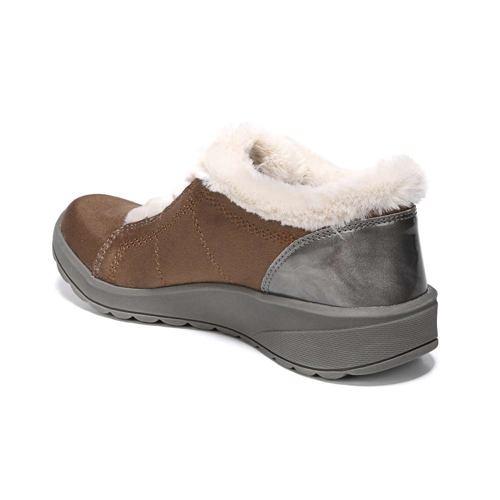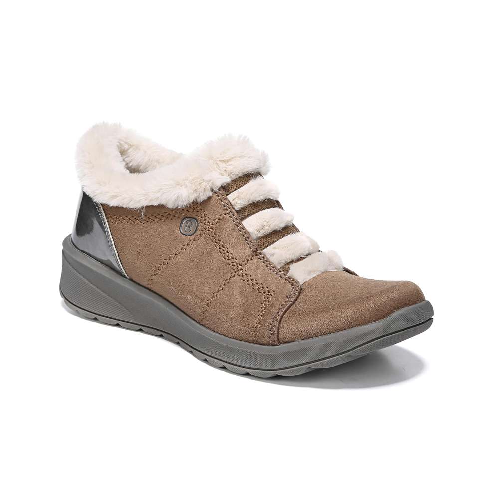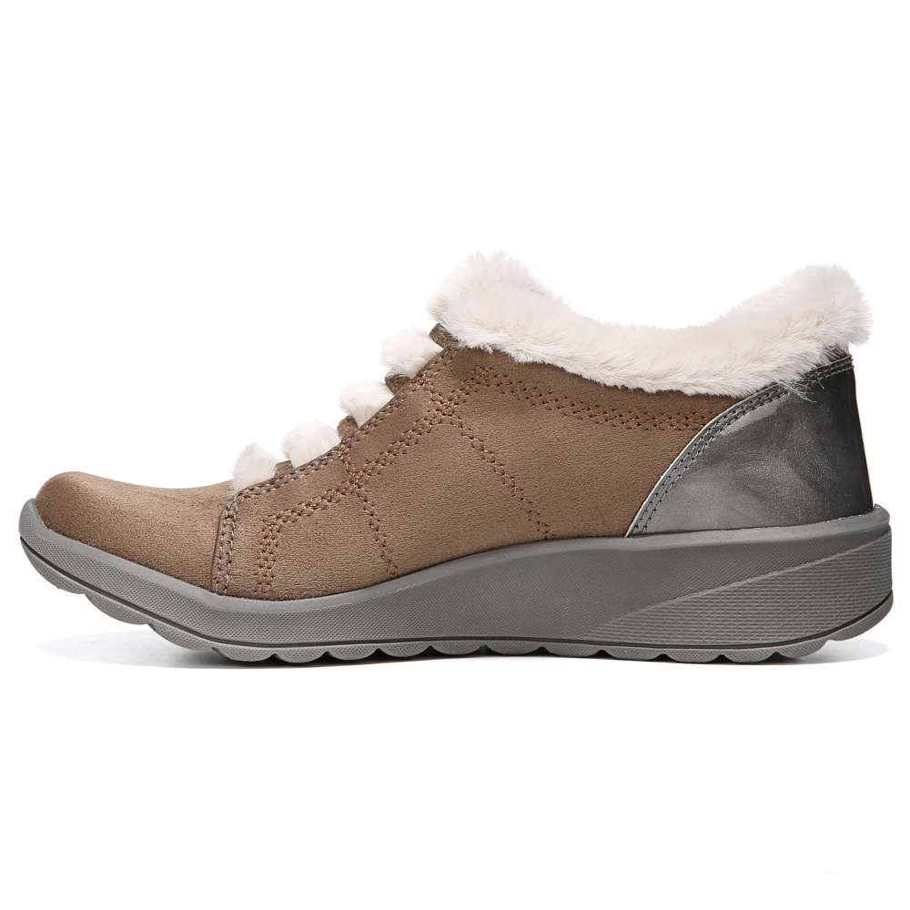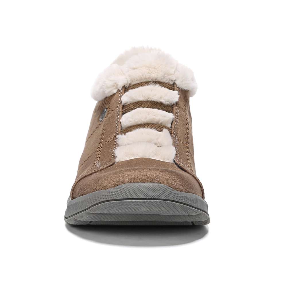 • Stretch fabric upper with faux fur lining in a casual bootie style with a round toe.