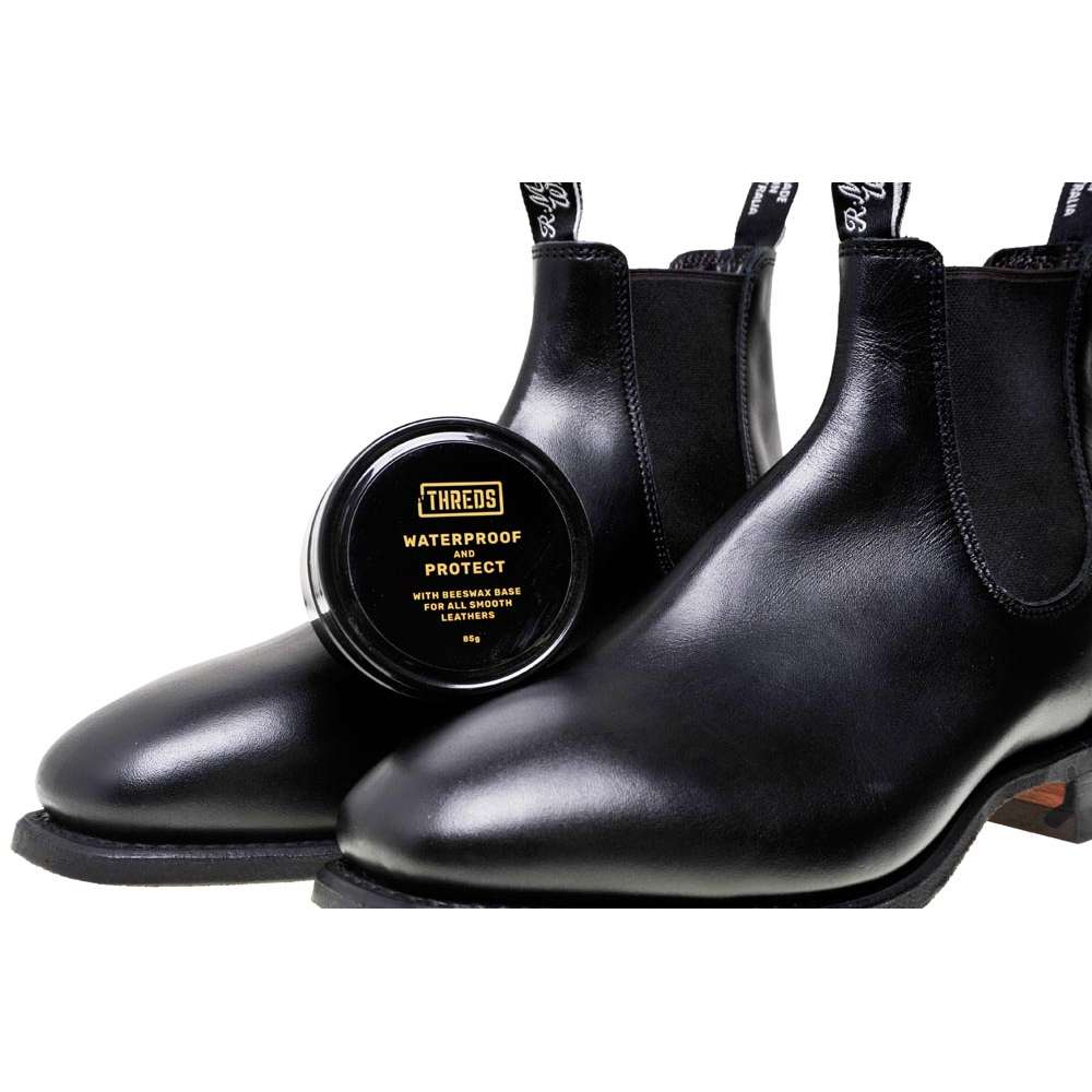 Stay smooth with Threds Waterproof and Protect. This beeswax base is leather sneaker essential. It cleans and protects against water, liquid, and salt, all while keeping leather soft and supple. Ideal for smooth leathers.